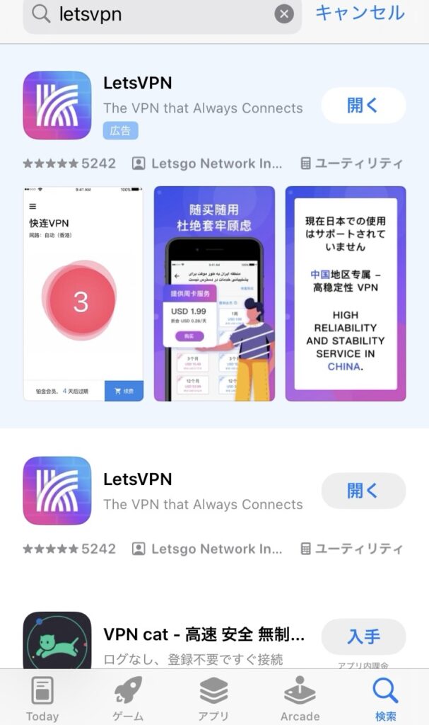 私はLet’s VPNというアプリをダウンロードしていきました。