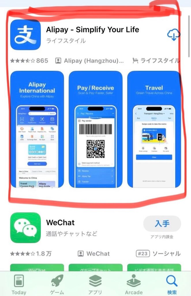 アリペイのアプリをダウンロードして日本のクレジットカードと紐づけしておきました。
